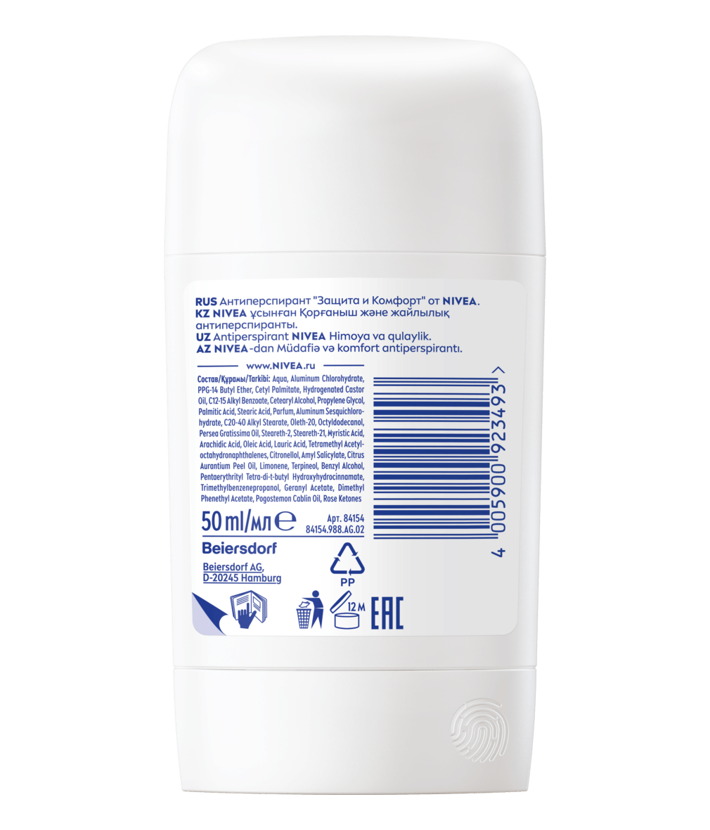 Антиперспирант-стик "Защита и комфорт" от NIVEA с новой эмульсионной технологией и антибактериальным эффектом защищает вас от пота и неприятного запаха на 72 часа. Ощутите чувство свежей и чистой кожи, с бережным уходом от NIVEA.