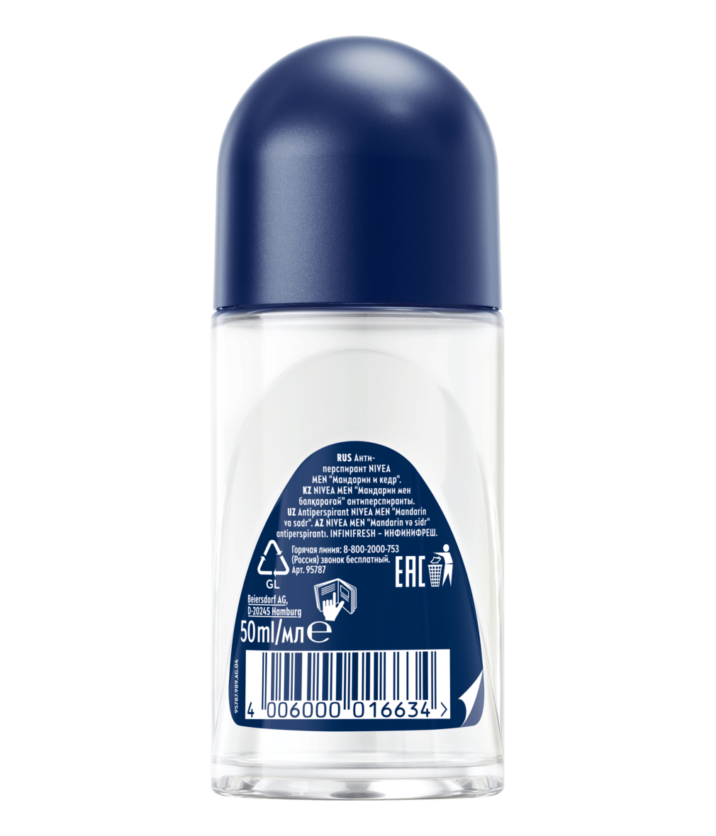 Антиперспирант NIVEA MEN "Мандарин и кедр" обеспечивает длительное ощущение свежести. Надёжная защита с заботой о коже на 72 часа