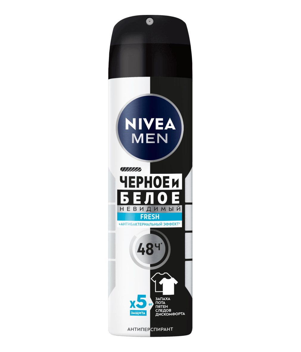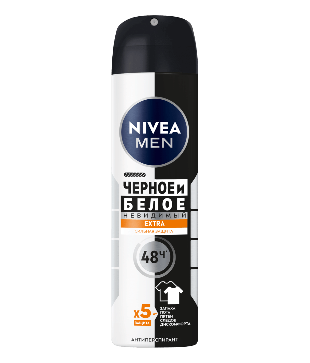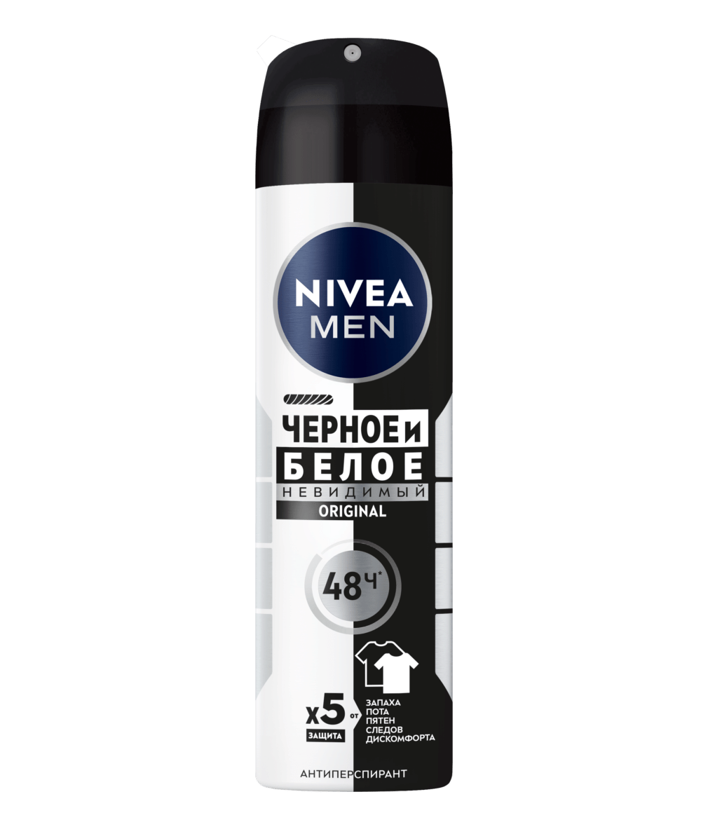 Дезодорант-антиперспирант ЧЁРНОЕ И БЕЛОЕ НЕВИДИМЫЙ от NIVEA Белое остается белым, черное остается черным! Защита 48 часов.