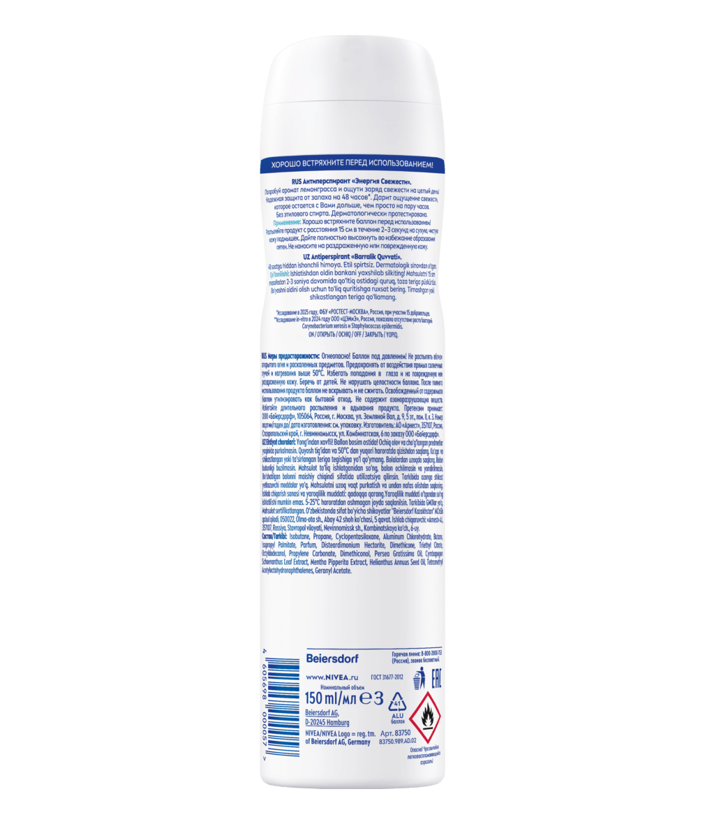 - Защита антиперспиранта 48 часов и мягкий уход NIVEA