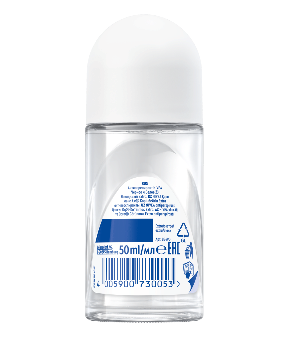 Попробуйте антиперспирант Nivea Черное и Белое Невидимый Extra с улучшенной формулой и 5ю действиями защиты, где белое остается белым, черное остается черным! Надежная защита от пота на 72 часа с заботой о коже.