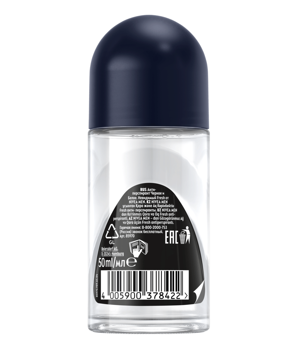 Антиперспирант Черное и Белое Невидимый Fresh от NIVEA MEN не оставляет белых следов на черной одежде, предотвращает появление желтых пятен на белой.