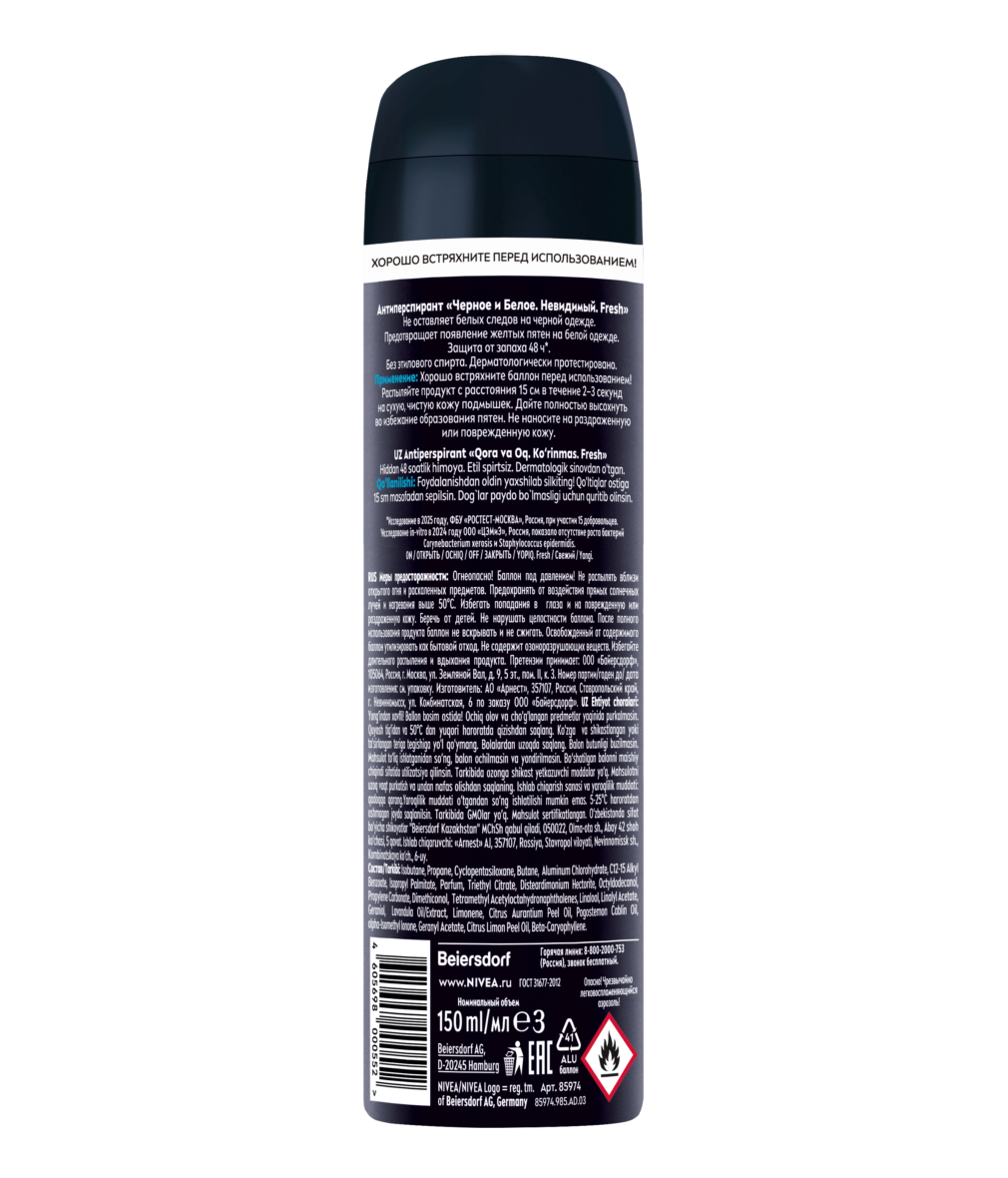 Антиперспирант спрей Черное и Белое Невидимый Fresh