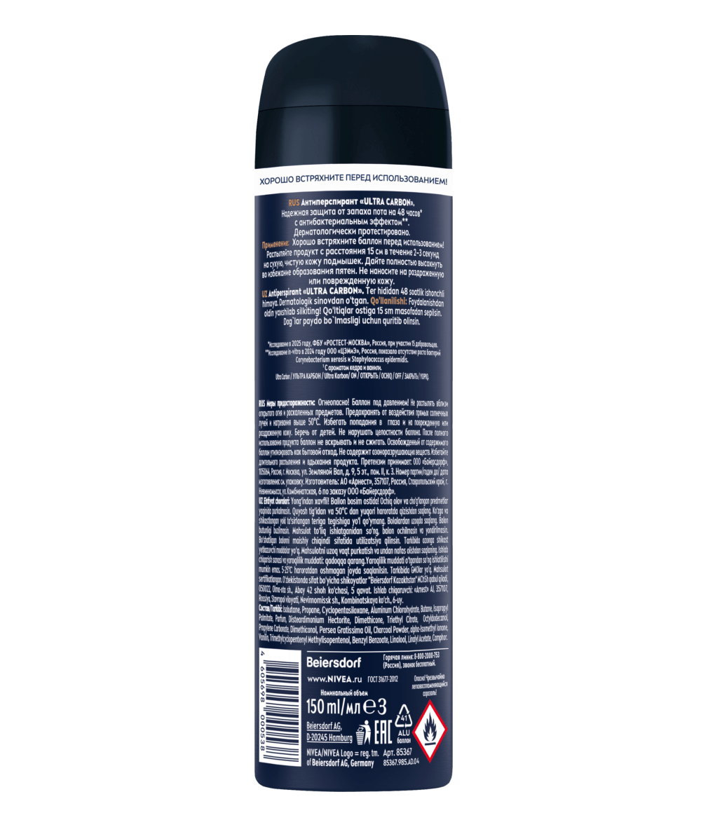 Почувствуй длительную защиту от пота и неприятного запаха с антиперспирантом от NIVEA MEN ULTRA CARBON