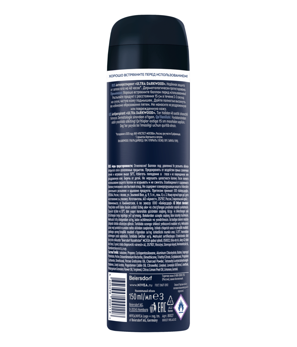 Почувствуй длительную защиту от пота и неприятного запаха с антиперспирантом NIVEA MEN ULTRA DARKWOOD. обладает современным и мужественным древесным ароматом.