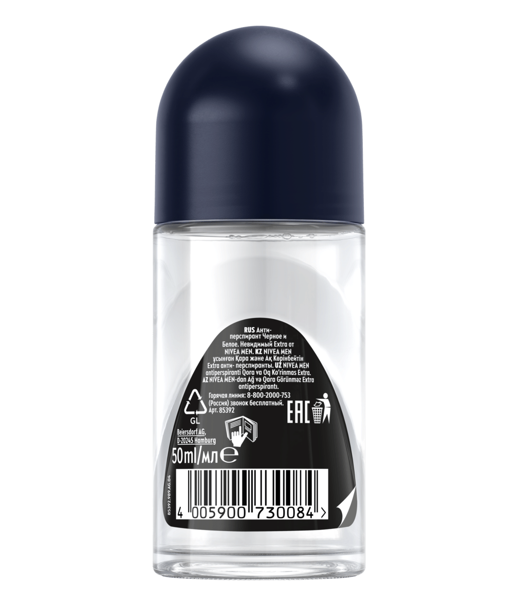 Антиперспирант Черное и Белое Невидимый Extra от NIVEA MEN не оставляет белых следов на черной одежде и предотвращает появление желтых пятен на белой. Ощути надежную защиту от пота на 72 часа!