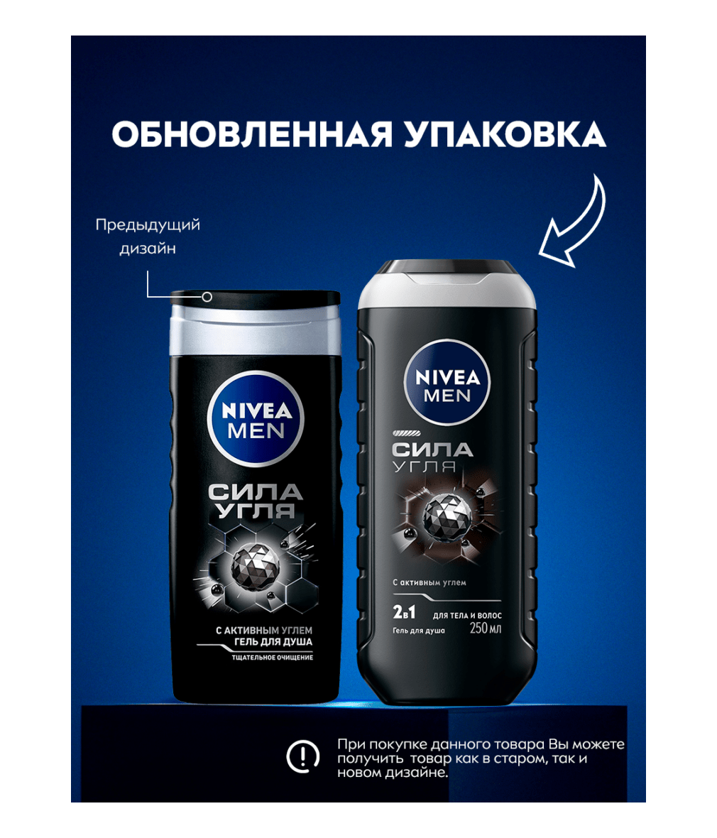 Встречайте гель для душа «Сила Угля» 2в1 для тела и волос от NIVEA MEN в обновленном дизайне!