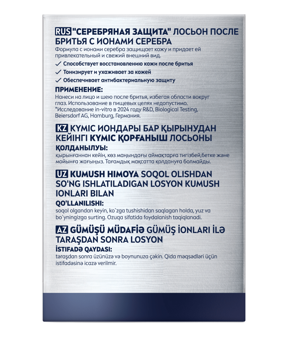 Деликатно ухаживать за твоей кожей поможет лосьон после бритья «Серебряная защита». Одно из преимуществ лосьона: мгновенное впитывание, ты не ощутишь липкую пленку на лице после использования.