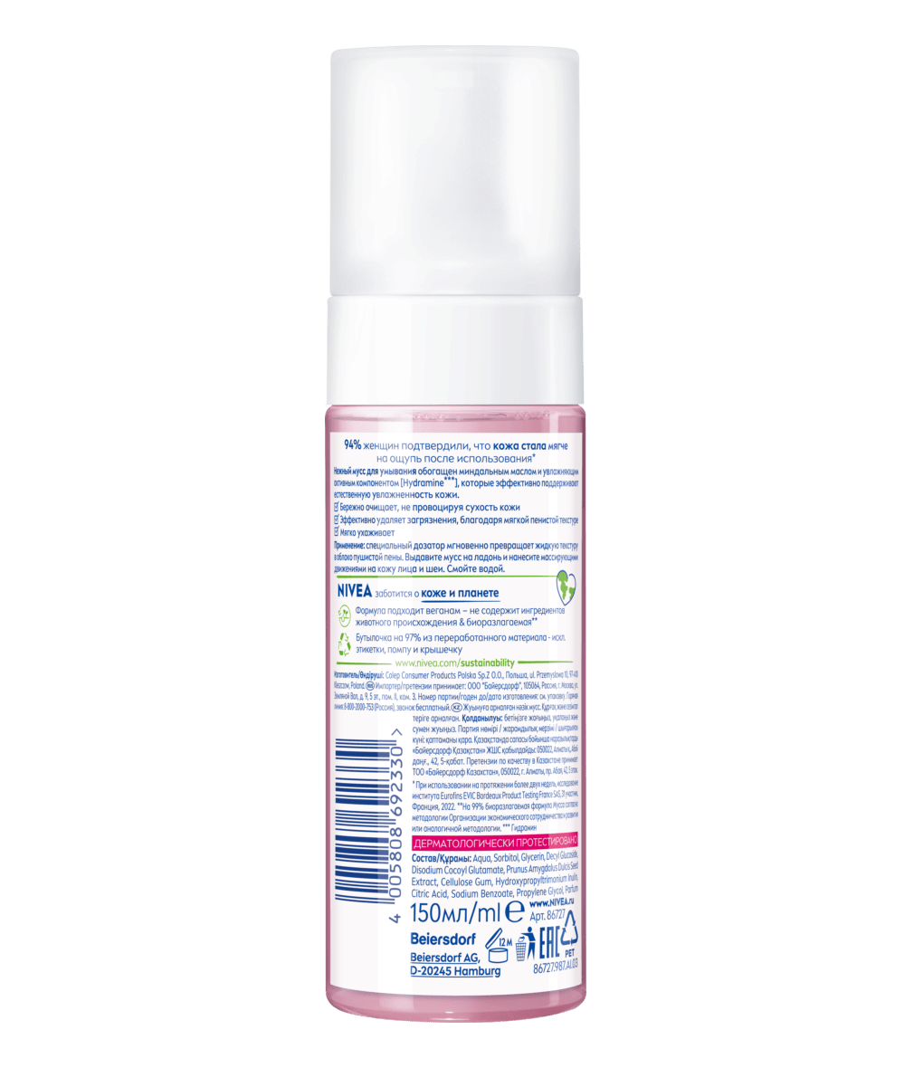 Попробуйте бережное очищение, не провоцирующее сухость кожи. Нежный мусс для умывания от NIVEA обогащен миндальным маслом и увлажняющим активным компонентом Hydramine, которые эффективно поддерживают естественную увлажненность кожи.