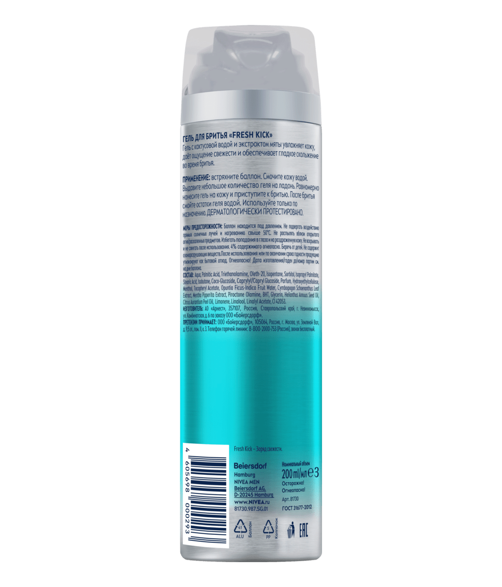 Гель для бритья NIVEA MEN FRESH KICK с кактусовой водой дарит ощущение свежести на весь день.