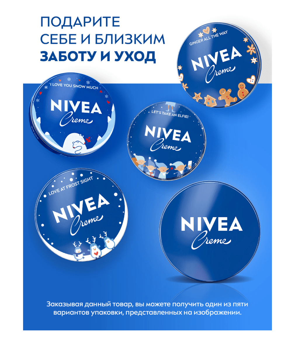 Универсальный увлажняющий крем NIVEA CREME теперь в обновленном дизайне с ярким синим цветом баночки. Свойства крема при этом остались неизменными! NIVEA CREME эффективно ухаживает за кожей лица, рук и тела.